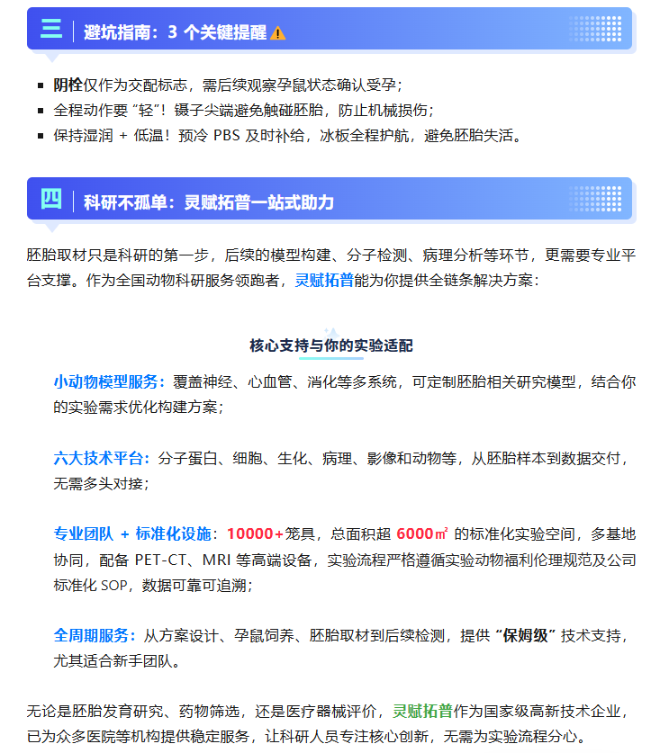 如果你的实验遇到胚胎取材难题、模型构建瓶颈,或需要定制临床前 CRO 服务,欢迎随时在公众号后台留言咨询!